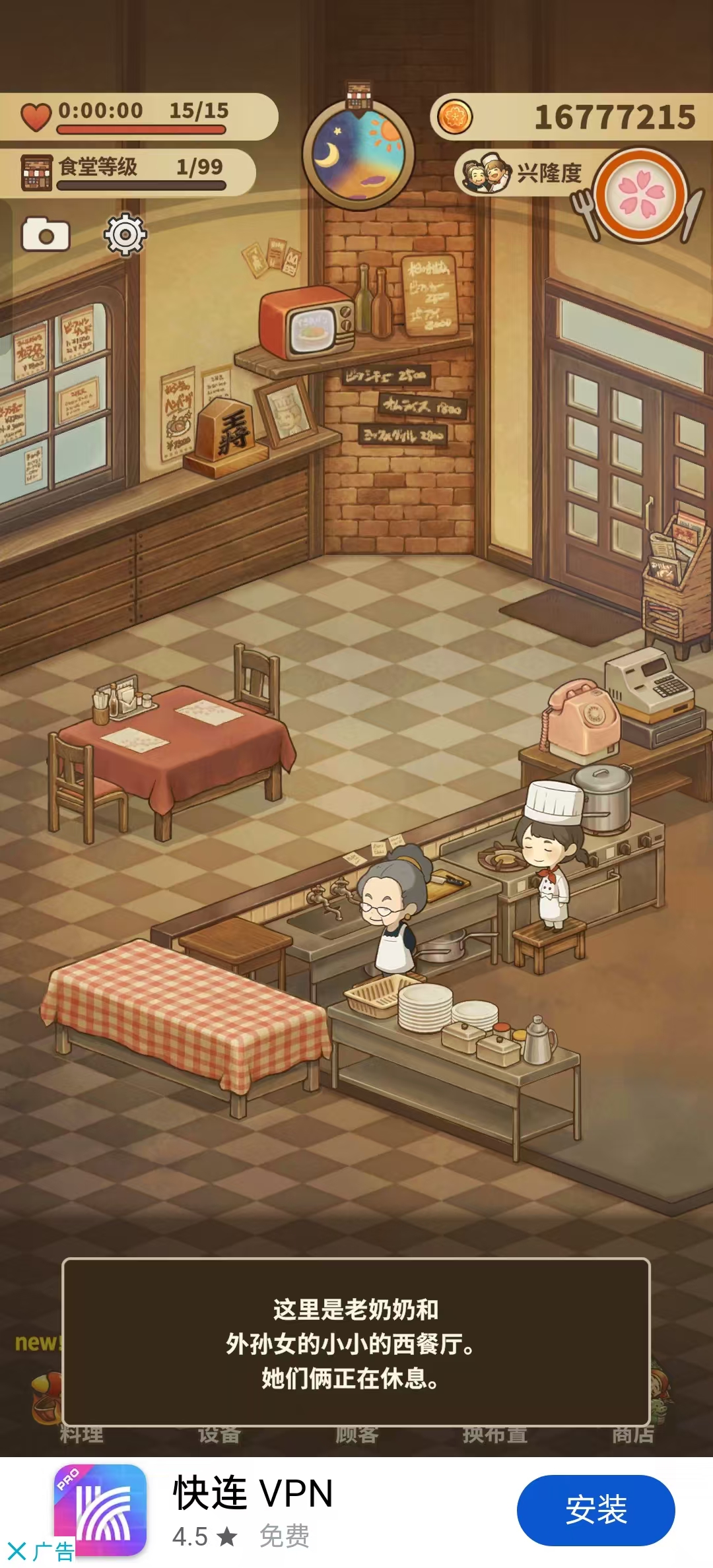 2、故事的开头是你所扮演的主角奶奶与孙女经营着一家属于自己的西餐厅,为每天往来驻足的客人制作美味的食物。