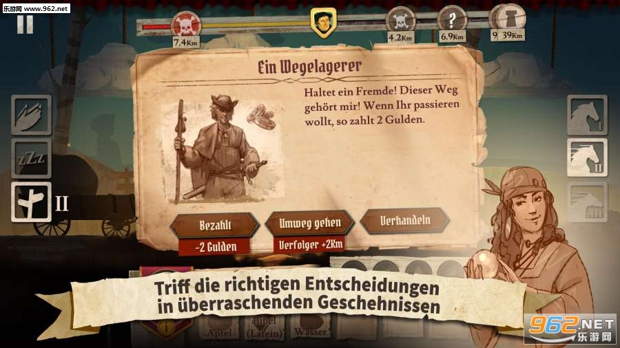 游戏中,玩家需要注意在旅途中让自己填饱肚子,饥饿、口渴、疲惫都可能会要了你的命。因此判断好形式,做出符合当下环境的决定,将让你走的更远,从而帮助马丁路德完成他的旅行。