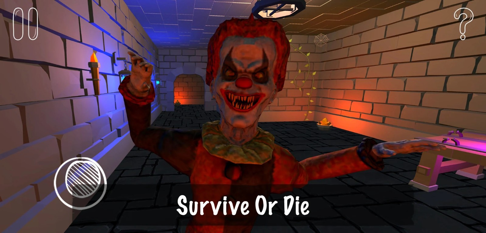 1、躲避在这里追击你的小丑怪人,玩家将作为失忆的主人公在这里找到一切的真相。