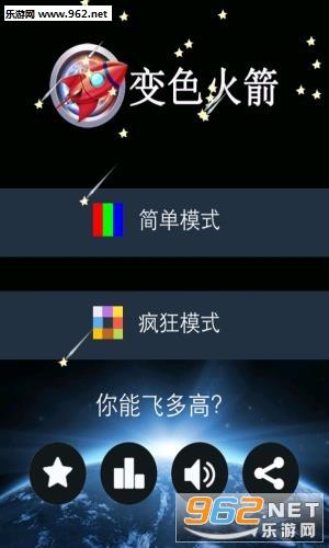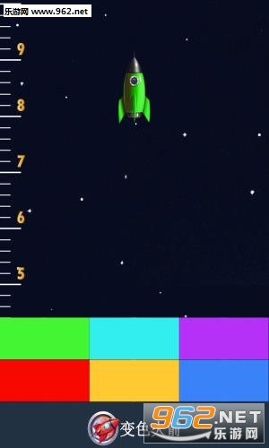 火箭游戏涉及到很多关于高科技武器,太空冒险、星际殖民等诸多元素,玩家可以利用研制的火箭作为载具,通往深度宇宙空间,对浩瀚宇宙和神秘的外星文明进行访问,在未知的空间寻找资源。模拟火箭类游戏需要玩家具备一定的物理常识,对高科技感兴趣,游戏中的概念具有超前意识,比较好玩的火箭游戏有《火箭车》、《疯狂火箭》等。今天962小编为你推荐的是一款飞行类的游戏,考验你的敏捷,点击对应的颜色让火箭高飞。能否开创最高纪录,火箭不飞天就不叫火箭了。