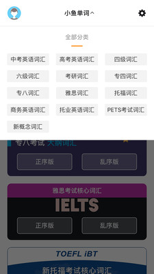 小鱼单词包含中考词汇/四级词汇/六级词汇/考研词汇/雅思词汇/托福词汇/专四专八/商务英语词汇/新概念词汇/写不下了