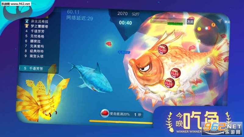 在这游戏里,没有鸡可以吃~因为鸡不会潜水...所以它叫做《今晚吃鱼》其实《今晚吃鱼》只是一个小游戏。完全免费..免费...免费...你可以约上朋友一起把陌生人吃掉,也可以故意或不小心地把朋友吃掉~光是想象你是不会知道那有多美味的!当然,被吃掉的也有可能是你!