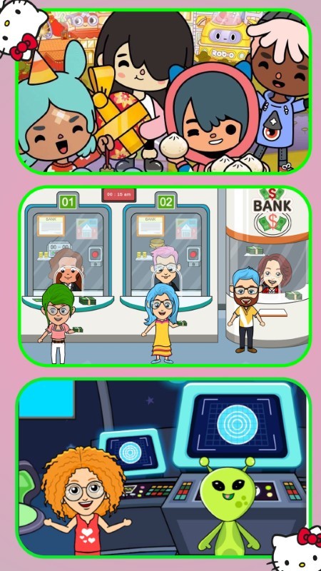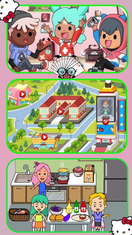 这还不是全部,你和孩子们可以控制城镇的各个方面,与不同的地点和数不尽的角色互动。快来体验下载这个游戏吧!
