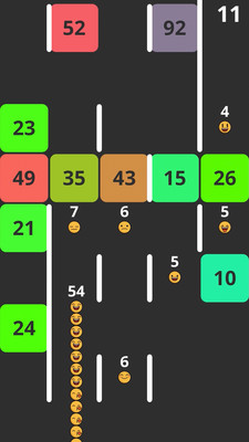 游戏画面由黄色小球和若干富有质感的彩色方块组成,玩家需要操作扭动前行的黄色「长条」——蛇,尽可能吃掉足够多的豆豆,因为标有数字的彩色方块会强行收“过路费”——消耗你的豆豆养料。