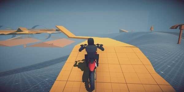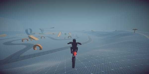 1.控制自己的摩托车在广阔的世界中探索,利用场景元素,享受游戏的乐趣。