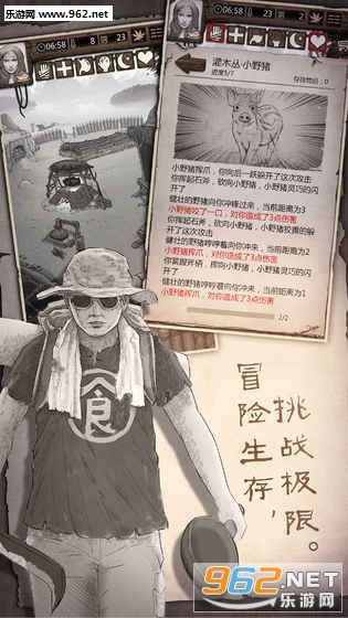 《荒野求生手游正式版》是一款手绘风高自由度文字类生存冒险游戏,全新的生存冒险玩法,玩家流落荒岛展开一场艰难的求生之路,在各种恶劣的野外生存环境下生存下来,培养你的生存技巧,制作食物建造房屋和野兽进行战斗,玩家可以选择不同的角色,每一个角色的初始加成都各有不同,决定了你以后的生存方向。