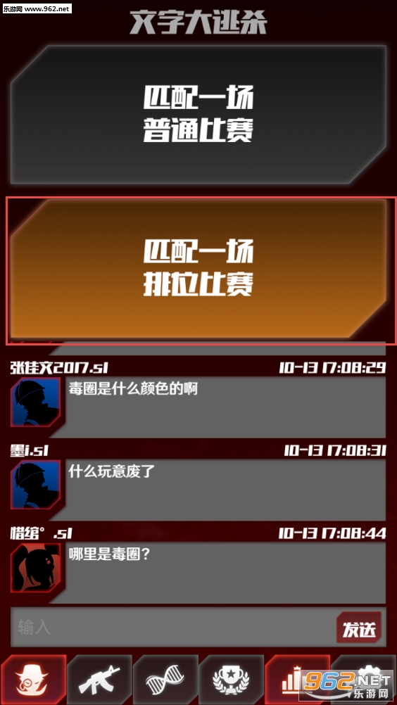 《文字生存大逃杀》是一款文字类型的大逃杀生存游戏。随着绝地求生的火爆,大逃杀的游戏也是层出不穷,本作不同于其他大逃杀,配置要求低,更加注重吃鸡的策略和姿势,手残党的福音,让你在低端机也能愉快吃鸡,不需要大内存,不需要高画质,文字大逃杀全靠文字和策略感兴趣的玩家可以下载体验!