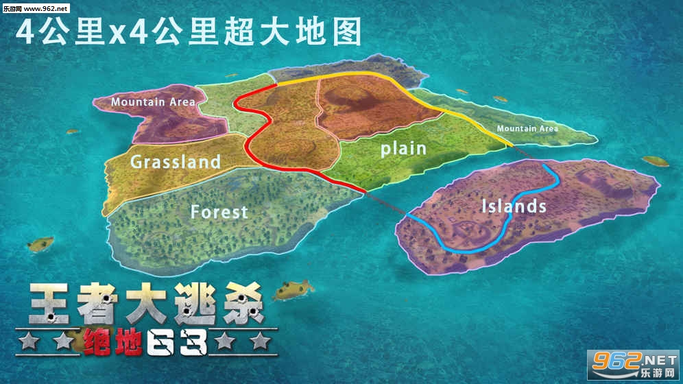 4公里×4公里的广阔地图,海洋、陆地、山脉、草丛、工厂;丰富的地图元素,让你充分体验关门打狗、飞车抢人头、荒野跑毒的乐趣!