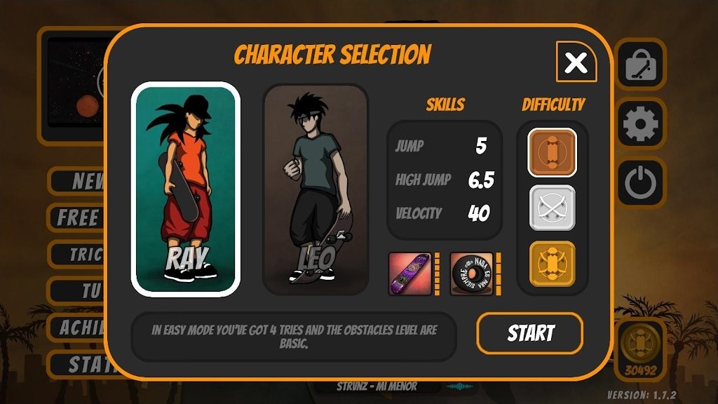 玩家可以选择不同类型的滑板和滑板选手,每个滑板选手都有独特的外观和技能