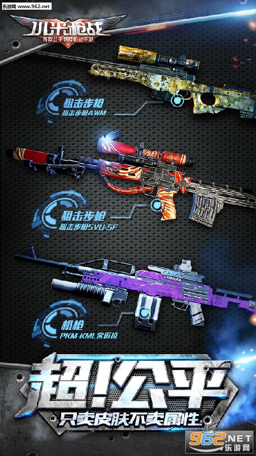 相同类别武器的枪械属性参数、相同武器不同皮肤的枪械属性参数均保持相对平衡,坚持让竞技以实力说话,做最公平的FPS手游;