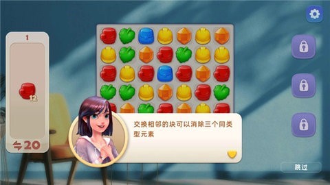 2.突破关卡任务,解锁各种道具,帮助玩家更轻松地完成消除,同时获得更多家具