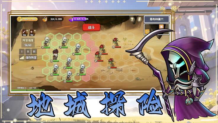 1、带领你的队伍对抗哥布林大军,超多的武器选择,提高实力;