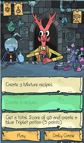 《传奇商人安卓版》是一款具有神奇魔法的休闲益智游戏,这是一个神奇的商店,你是这里的一位魔法药剂师,你要做的是,用手中的四种颜色原料牌,为顾客调出他们需要的药剂,游戏简单又神奇,魔力十足,快来下载体验吧!你的客人会指定两种颜色的原料,你的药剂中出现这两种原料会额外获得1币的奖励,另外好像有至少要出现一种的规定?不同颜色的牌会有组合,例如有的牌会显示左边是黄色,按照要求做可以获得1币的奖励出现双胞胎(即同颜色)可以获得额外1币的奖励,另外客户要求的颜色连续出现,比如三张连续的,可以获得+1+2+3的额外奖励,黑牌出现不要屯在手里,想办法尽快花掉,有的客人专门要黑牌,有的牌旁边是黑牌有额外奖励