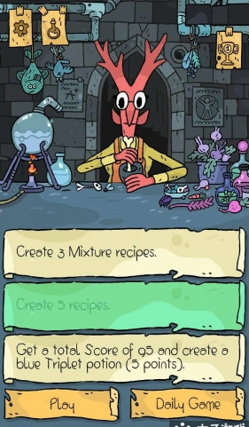 1.你的客人会指定两种颜色的原料,你的药剂中出现这两种原料会额外获得1币的奖励,另外好像有至少要出现一种的规定?