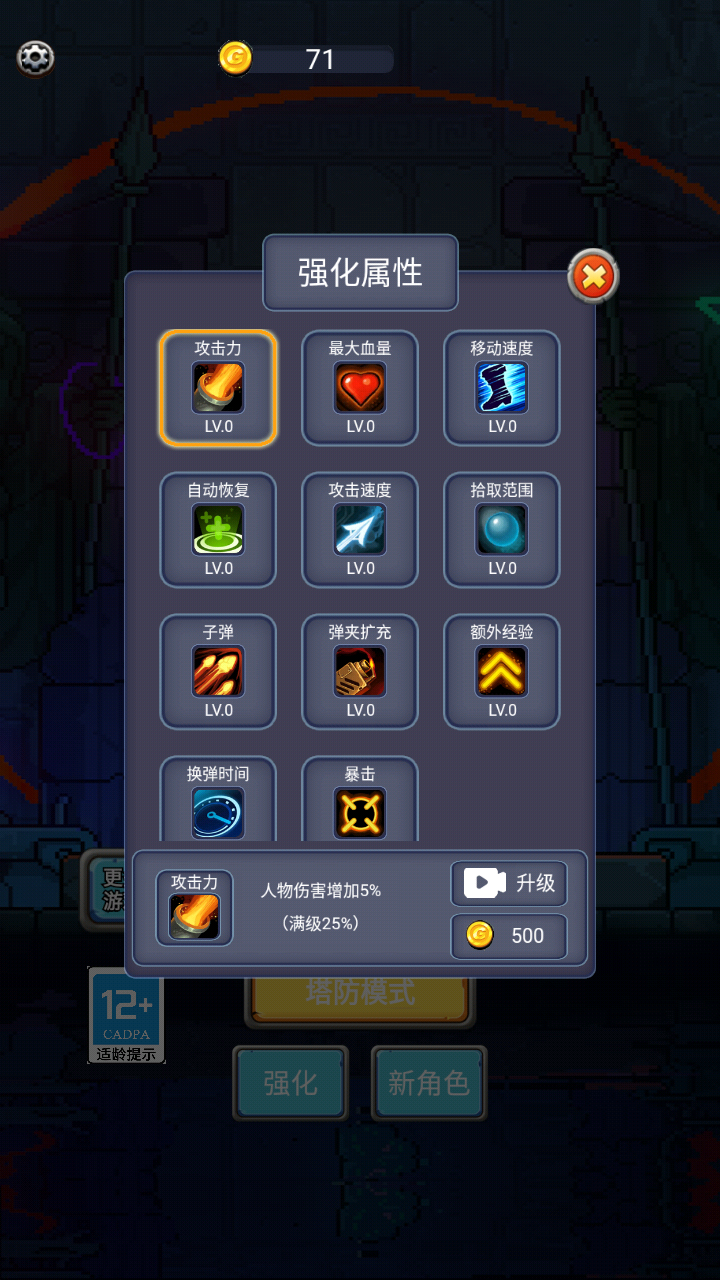 2、玩家可以使用获得的金币升级角色的属性,这样战斗力可以完美提升上去。