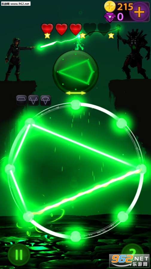 成为一个强大的巫师,在屏幕上滑动火,冰,电和生命力的魔法条纹。仅使用8个点构成的圈,你必须通过连接这些点来绘制正确的形状。
