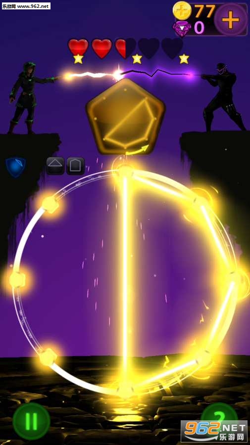 《Shazap:匹配作画中文版》是一款极具新意的点击对战类手机游戏,游戏的玩法非常简单,玩家只需要按照游戏的提示来滑动手指进行旋转、交叉、连接等简单操作,同时画面中便会逐渐呈现炫丽的魔法图案并且对对手造成攻击伤害,感兴趣的玩家赶紧来下载体验吧!