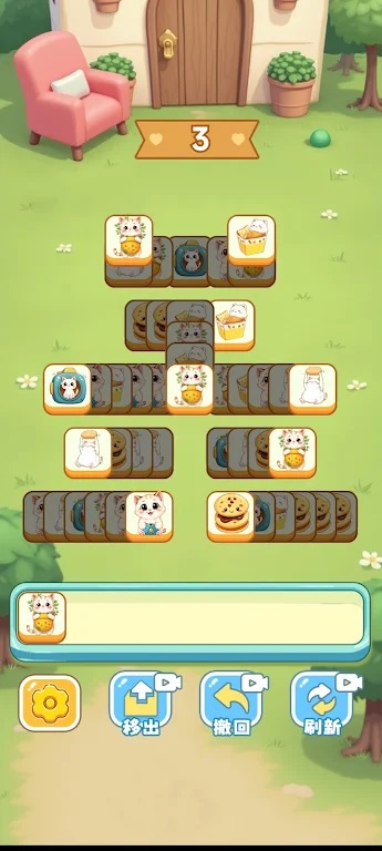 仅有的7个卡槽位迫使玩家权衡每一步操作——直接消除显性猫咪可能堵塞后续机会,而优先清理底层遮挡物则能释放更多空间。这种“取舍艺术”将三消玩法推向策略深度新高度。