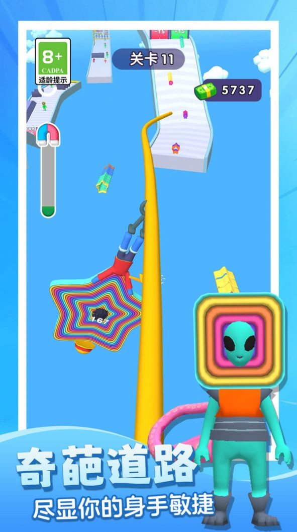 1、各种颜色的橡皮人可以选择,开始跑酷冒险一路上紧张不已;
