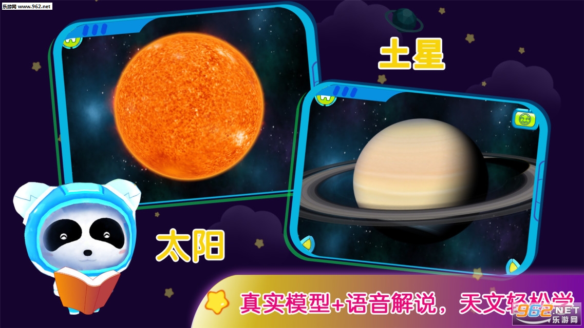 除了有行星的实体模型和科普语音解说外,还加入了大量丰富的儿童游戏及益智的互动内容,相信宝宝会在这款应用中找到天文的乐趣和TA的太空梦!