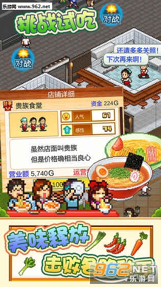 《开罗拉面店全国篇中文版》这是一款好玩的休闲经营手游。由开罗打造的官方中文版,熟悉的像素风格,让玩家重温童年的美好回忆。在游戏中,玩家将经营和建设自己的拉面馆,开发新菜和扩张店铺等。游戏玩法丰富有趣,感兴趣的玩家赶紧下载游戏体验吧!