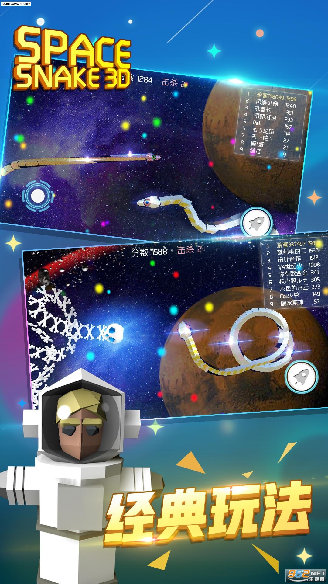 新的太空遨游、梦幻般的场景,全新3D贪吃蛇让你体验特别的乐趣。