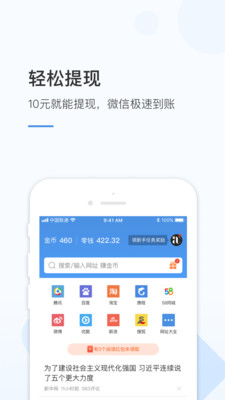 一款能赚红包的浏览器APP。不仅搜索功能强大,速度快,省流量,还可以通过看新闻,赚取金币和现金红包哦!