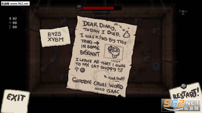 《以撒的结合:重生》是款带有浓浓的Rogue-like游戏元素的动作角色扮演游戏。玩家将跟随以撒的脚步踏上旅程,发现各种奇特的宝物,这些宝物将改变以撒的型态并赋予他超人类的能力,帮助他击退一群又一群的谜样生物,发掘各种秘密并为了自身安全努力奋战。