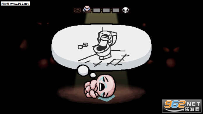 血量少,P1本体追击,P2本体死过后小孩会发怒加速追击玩家。但是由于重生地图和原版不同,进门后请快速反应,因为可能会被开场卡位,影响无伤成就和天使恶魔等!绕场若干周就可以了,很简单的boss。变体大的速度会快一些,小的慢很多。