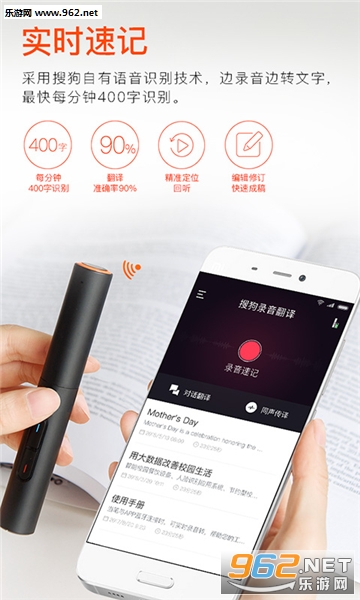 《搜狗录音翻译安卓版》这是一款为搜狗速记翻译笔打造的手机APP。软件功能丰富,使用简单方便。搭配搜狗速记翻译笔使用,可以快速录音,实时转换成文字记录,也可以18种语言互译,实现跨语言沟通。感兴趣的用户可以下载体验!