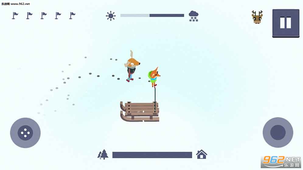 在这场游戏中,你将控制一只狐狸,在暴风雪中寻找他的朋友鹿。你需要他回家。但是要小心,每天的每一秒都很重要!