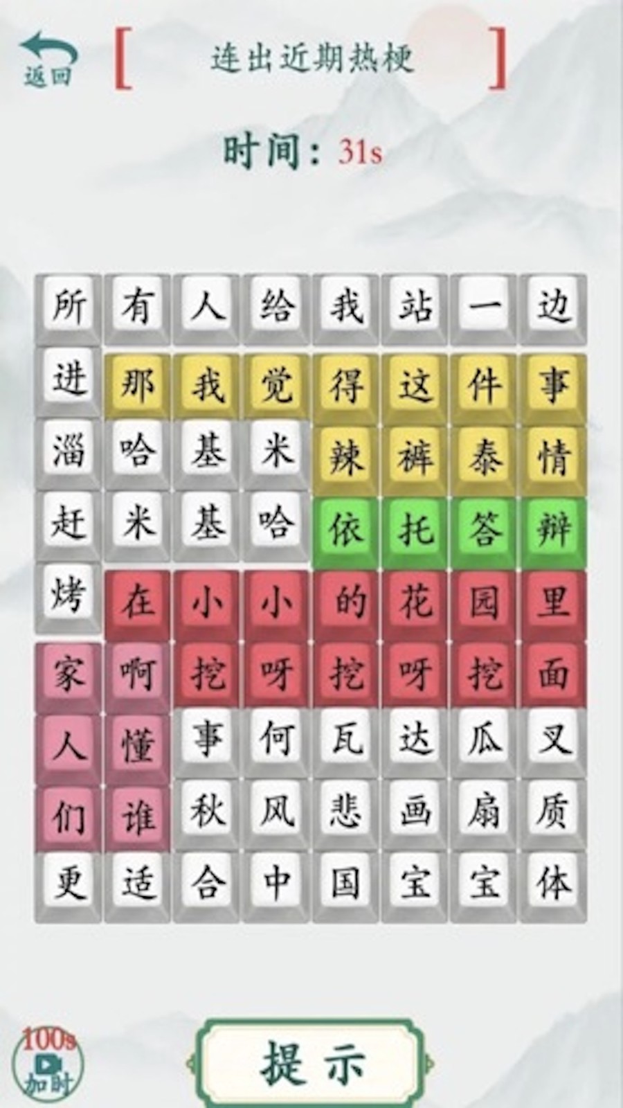 3、需求将对应的汉字梗填在所给出的空格中,以便进入下一关;