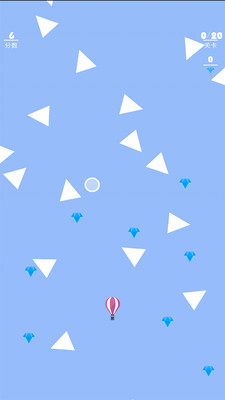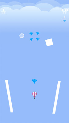 《放飞热气球安卓版》这是一款简约风格的休闲街机类手游。游戏玩法简单易懂,玩家只需要操作前方的白色圆球,抵挡或者撞开出现的障碍,保护后方的气球安全上升,收集钻石,并且尽可能获得更高的分数。游戏上手容易,感兴趣的玩家可以下载体验!