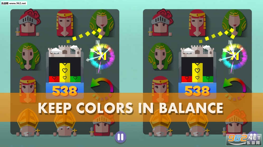 但是你仅仅以为只是找不同就错了,游戏里后期会有三种色系的角色,你不但需要找出不同,而且需要优先去选择颜色快要消失的那一个不同,否则当魔王把三种颜色中的任何一种消灭的时候游戏就结束了,所以找出不同,并且保证三种颜色都没有消失,将魔王的生命值降低到0你就可以获取胜利了。