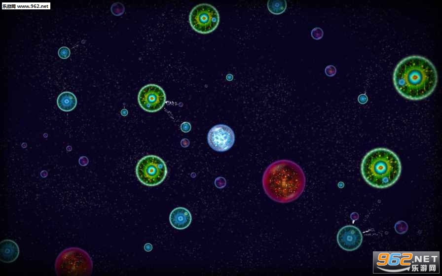 《星噬Osmos HD安卓版》是一款画面精致唯美的吞噬类趣味休闲手游,游戏的背景选取在无垠的宇宙,玩家将控制一个小星球冒险,游戏的玩法与小鱼吃大鱼类似,玩家可以控制星球吞噬其他的星球不断变大,注意躲避其他比你大的星球。