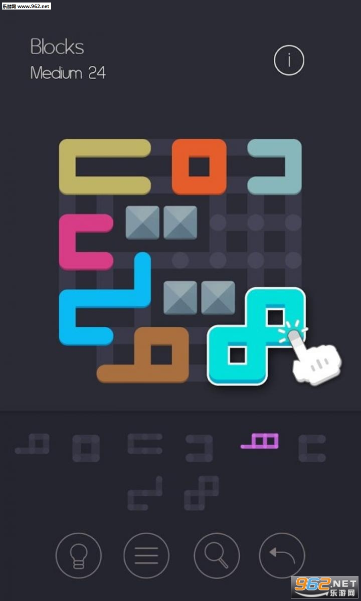 一个典型的块益智游戏以新的方式进行解释。拖动并在棋盘下降块,并覆盖所有的点。块不能重叠,仅被放置在它们装配到路径。
