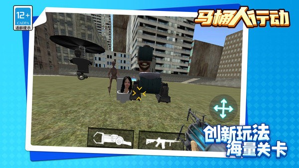 2、收集升级,在游戏中收集各种道具和资源,升级武器和装备,提升马桶人的能力和战斗力。