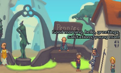 一款小巧而又充满恶搞的独特像素风格游戏,游戏讲述一个很小的故事,在解密中加入了一些恶搞的剧情.游戏中法蒂要去阿姨家玩,恰逢阿姨遇到了麻烦,阿姨发现家门口多了个怎么也叫不醒的老头.帮助小法蒂解决阿姨遇到的麻烦!全程就是在各种人和个人物品上找东西,完成对话,急需下一个对话,无聊的时候会是个不错的游戏!只有一个场景8个人物的游戏会给我们带来一个什么样的小故事呢?游戏虽然好玩,但是需要一定的英语基础.想玩的还等什么呢?