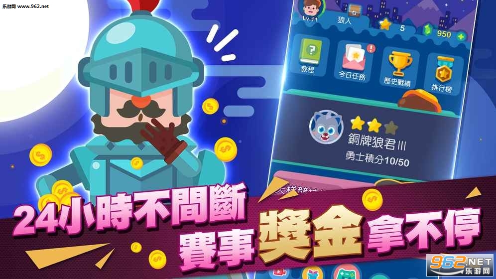 不满足单纯的休闲模式亦或是找不到实力相当的对手吗?除了休闲游玩模式外,游戏内设有天梯竞赛机制,玩家可透过天梯赛事获得积分与星星来升上更高阶段,越高的位阶赛事将考验玩家更深层的言语魅惑技巧,与各路高手进行大脑系格斗来争夺最强台湾「狼」的殊荣。
