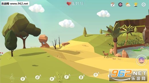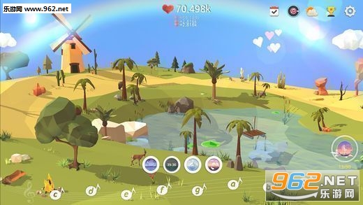 绿洲等级提升时地形会发生改变,还会出现树木和动物之类的新要素。通过音符演奏,能和游戏里的各种对象一起互动。可以改变天气,下雨或下雪;也可以改变时间,变成傍晚或黎明。