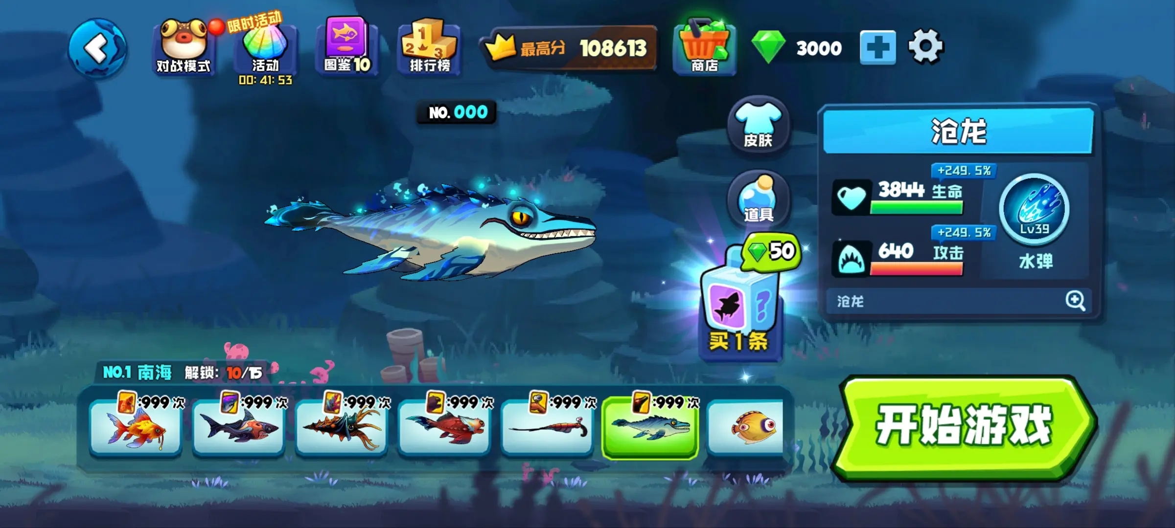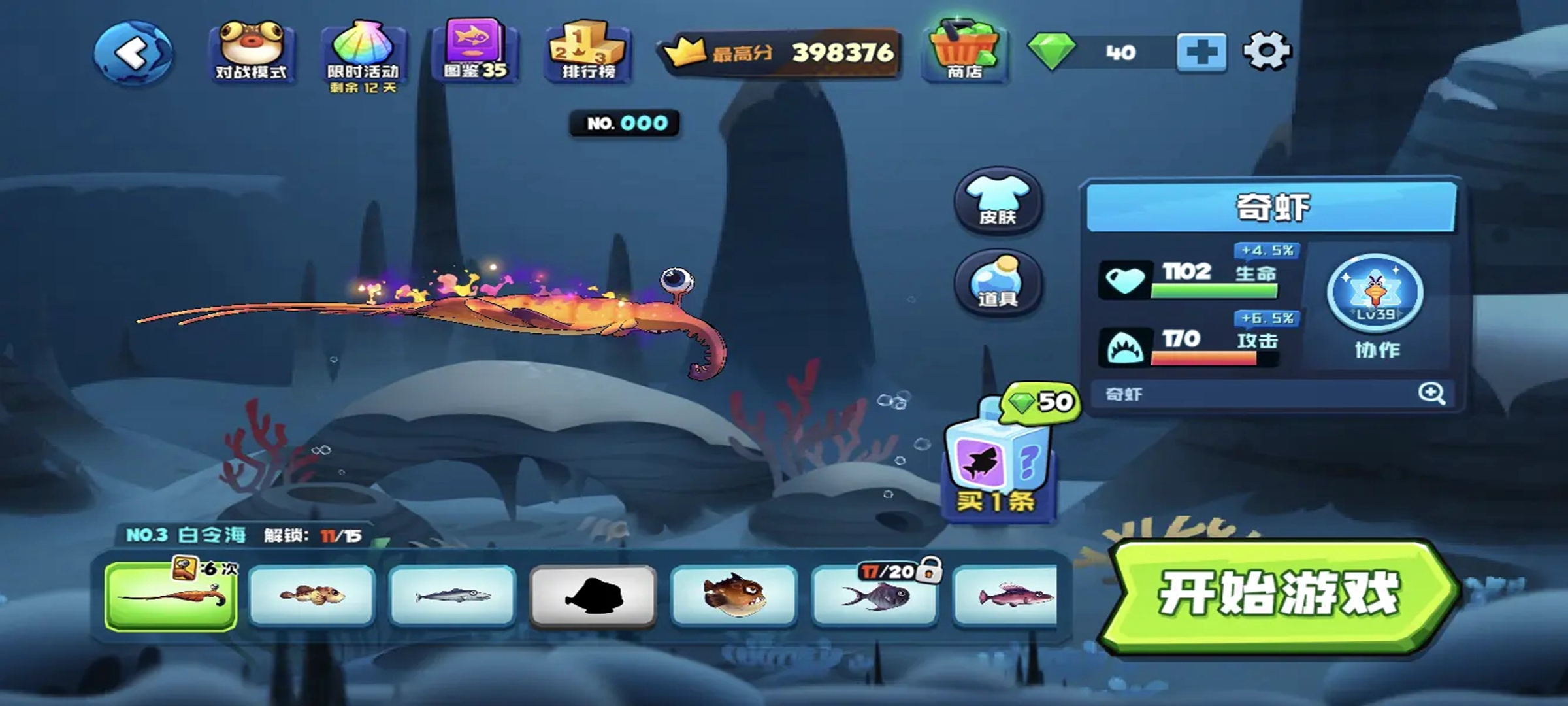 玩家可以在自己的水族箱中饲养来自各个海域的稀有鱼类。通过不断增加鱼的数量和等级,可以提高水族箱的收入。这些收入可以用来进化鱼的不同部位,帮助玩家在与其他鱼的战斗中获得优势。