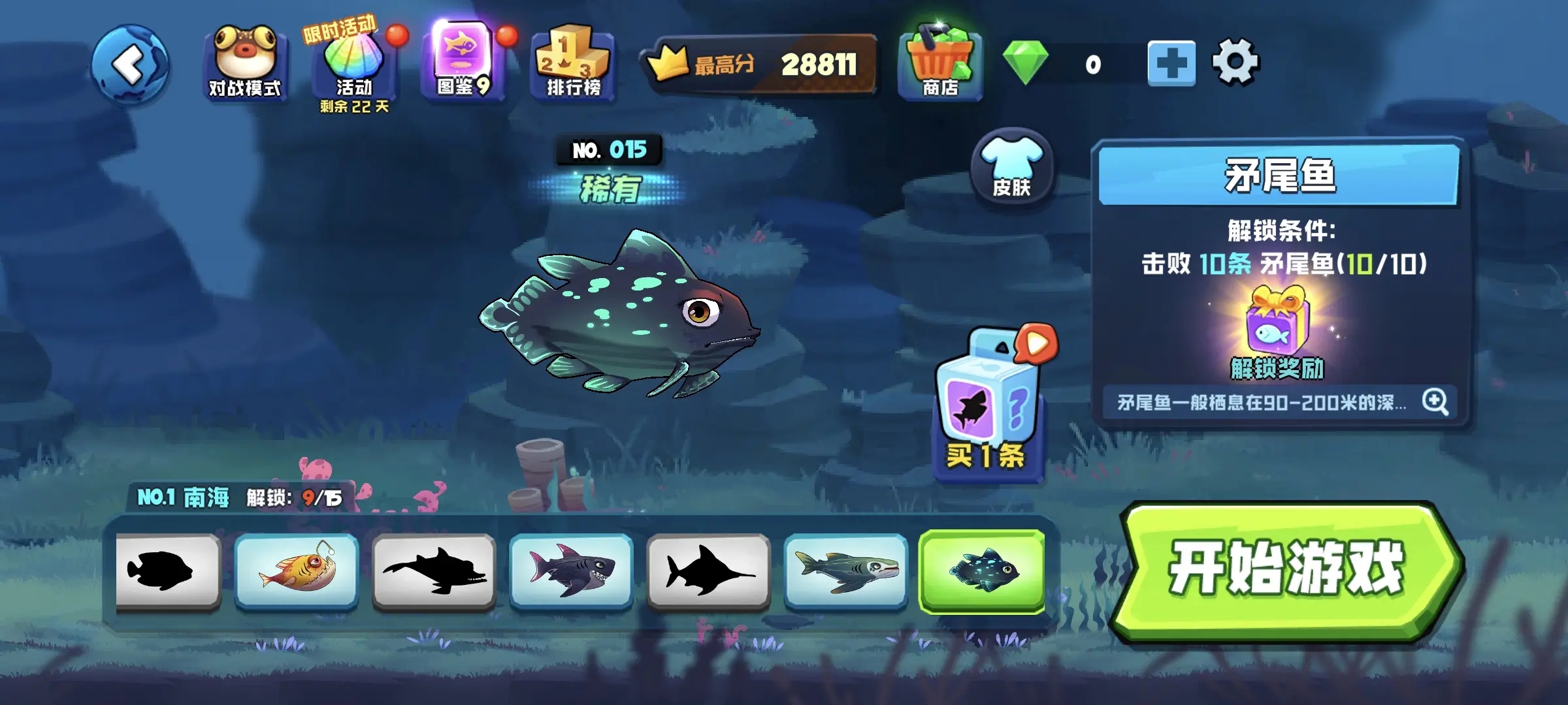 数十种不同的鱼类等待您的发现和解锁。每条鱼都有各种特殊技能,有策略地使用它们将帮助您生存更长时间。