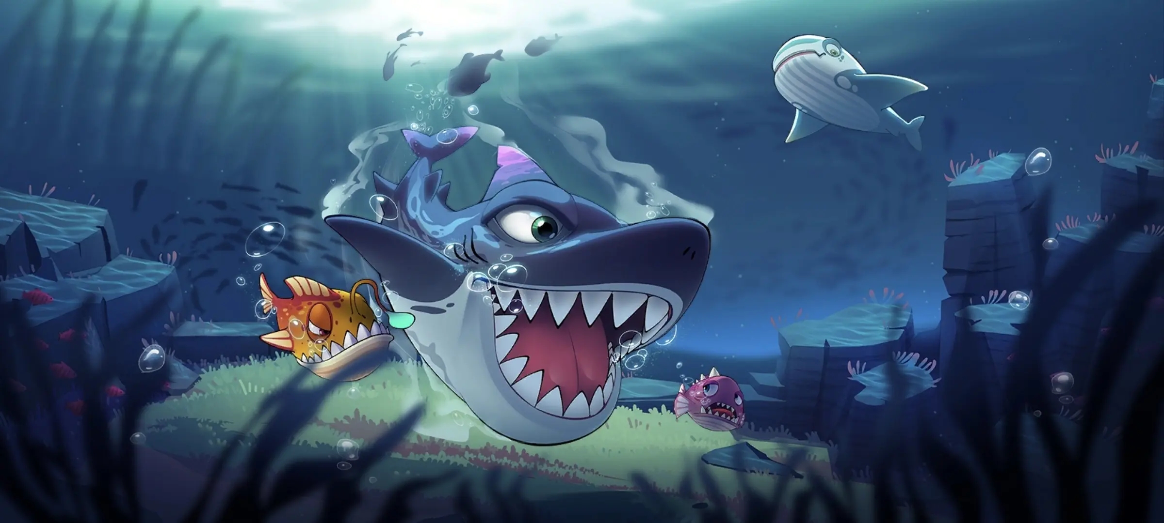 《鱼吃鱼游戏》是非常受欢迎的一款休闲娱乐小游戏,玩法也十分的简单,我们只需要通过操作吞噬来提升自己的等级让自己变得强大,吃掉比自己小的鱼类,除了在游戏中每种鱼类拥有的技能以外,我们还能通过提升一些常见技能,来提升所有自己拥有的鱼。
