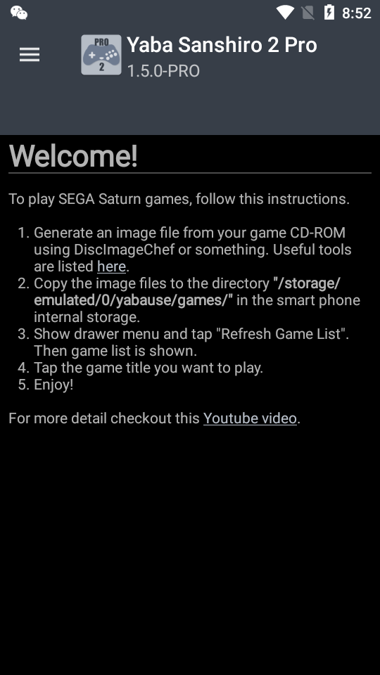 游戏文件夹由"/sdcard/yabause/games/"为"/sdcard/Android/data/org.devmiyax.yabasanshioro2.pro/files/yabause/games/"