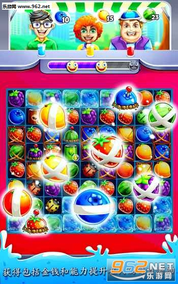 每个级别将逐渐增加困难,你可能需要一点帮助才能完成具有挑战性的级别。随着你的级别提升,你将可以获得实用功能,以帮助水果匹配,制作美味的冰沙,获得更多愉快的客户。