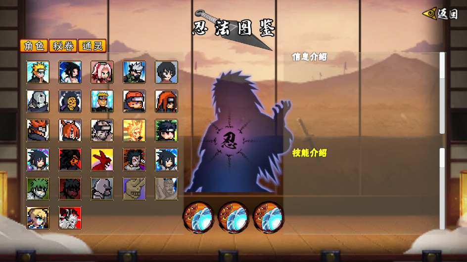 《像火次世代》游戏采用经典像素风格,将《火影忍者》中的经典角色、场景及忍术技能以复古又精致的像素形式重现技能特效均高度还原动漫设定,搭配原声音乐与配音,瞬间将玩家拉入熟悉的忍界战场。最新版本还优化了界面布局和角色建模,支持本地联机与多难度人机,AI对手从“简单慈悲”到“高难度连击狂魔”,满足不同水平玩家需求。