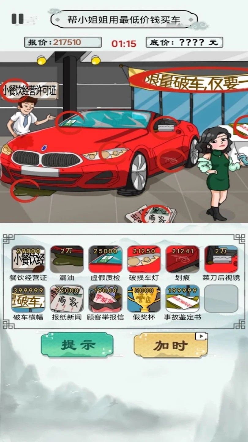 1.找茬通关是有时间限制的,场景描绘非常细致,让玩家一眼就理解其中所表达的内容