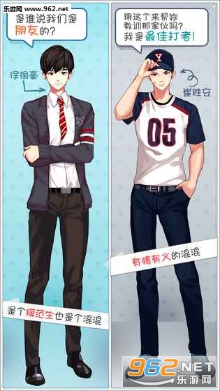 对,剧情就是,小混混和他的小弟们和邻居家小弟弟和以前的老同学都喜欢你,你可以跟他们培养好感,欣赏各种隐藏剧情和CG。讲真,这游戏人设、CG画的都不难看,并且还加了换装元素。玩家可以通过购买服装来打扮自己,因为剧情中会出现情敌,我们需要跟情敌比魅力值。当然,也可以买自己喜欢的男生的情侣装来一起约会。除了女主可以换装,男生也可以进行换装。只要玩家购买了男生的服装就可以开启以男生视角为主线的特殊剧情哦~