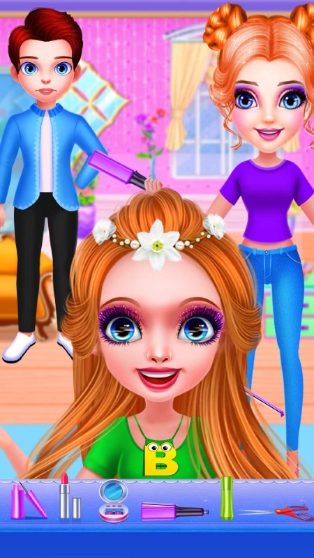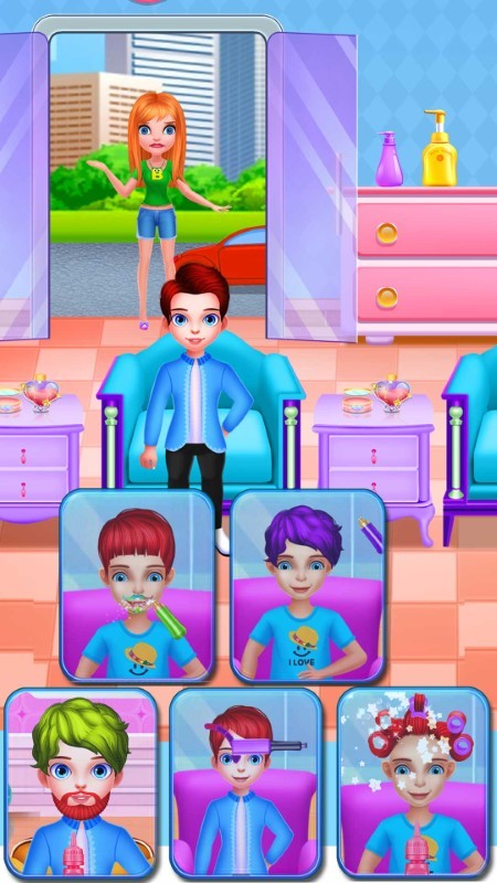 沙龙里有一位年轻貌美的理发师,她可以根据不同客户的不同需求为他们打造心目中理想的发型。你可以让她设计生日宴会的发型,或是专门针对旅行的发型,又或是来这里为约会设计时尚又吸引人的造型。 赶紧加入我们来体验一场时尚的发型造型艺术吧!