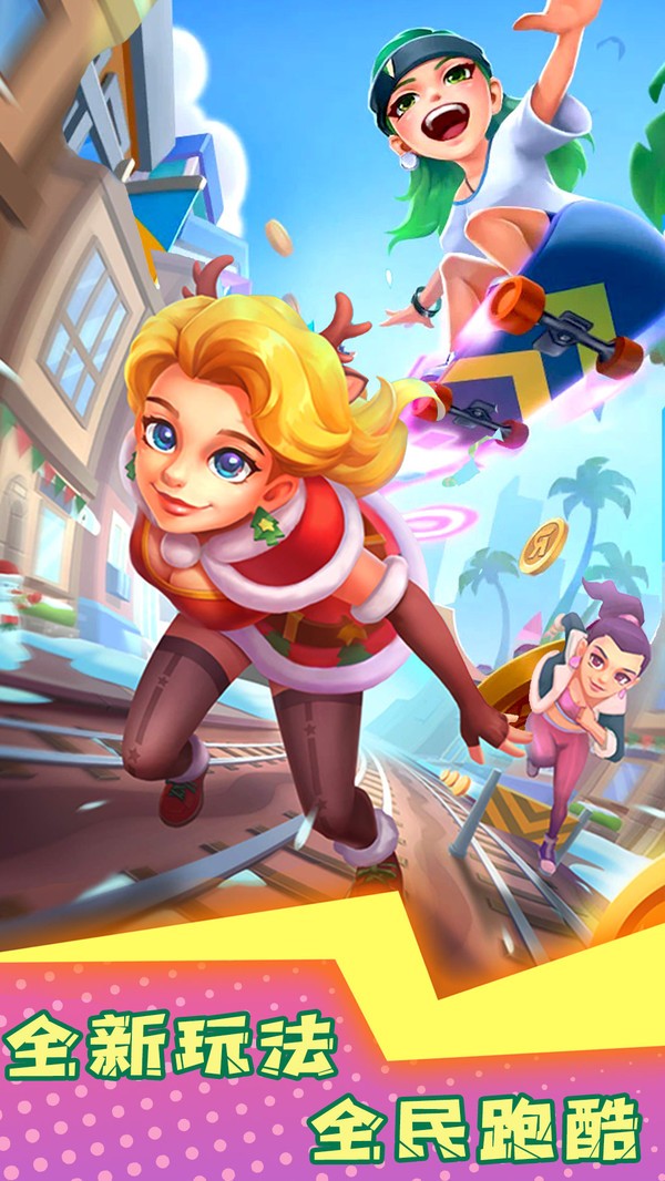 3、尽可能快速地躲避迎面而来的火车,选择你喜爱的角色在地铁中使用滑板冲浪。